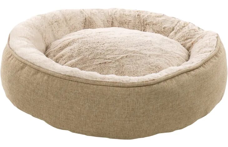 Seng Isidoor rund beige, katt og hund