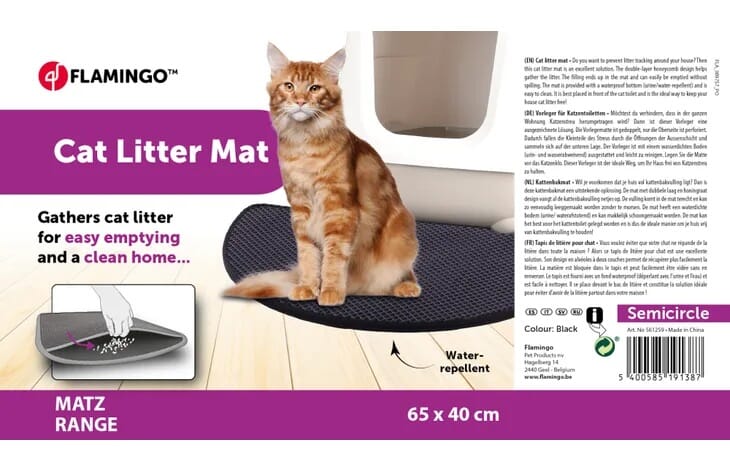 Kattesand matte Matz svart halv bue dobbel 65x40cm